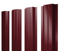Надежность. Секции евроштакетника п-образного 0,45x110 мм вишневого ral 3005 1м можно размещать на расстоянии от 2 до 4 см друг от друга при одностороннем монтаже. Таким образом, владелец частного дома или предприятия может быть уверен в конфиденциальности.